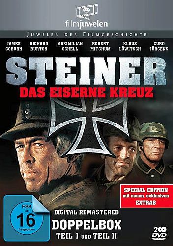 Steiner - Das eiserne Kreuz I: Sommer 1943: Die Deutschen sind am Ende. An allen Fronten befinden sich die Soldaten auf dem Rückzug - ebenso in Russland. Der altostpreußische Hauptmann von Stransky (Maximilian Schell) ist in dieser angespannten Lage an die Ostfront gekommen, um sich das Eiserne Kreuz zu verdienen. Dafür ist ihm jedes Mittel recht. Schnell gerät er mit dem in der Truppe hoch geachteten Steiner (James Coburn) aneinander. Steiner - Das eiserne Kreuz II: Nach den harten Kriegszeiten an der Ostfront darf Steiner (Richard Burton) Urlaub in Paris machen. Allerdings wird er gleich anschließend mit seiner Truppe an die Atlantikküste versetzt. Nebenbei wird Steiner noch in die Vorbereitungen auf das Hitlerattentat verwickelt. Mit dem Scheitern des Attentates auf den Führer stirbt auch die Hoffnung auf ein schnelles Kriegsende.